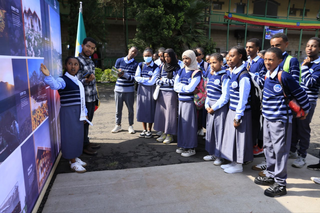 38ኛውን የዓለም ቱሪዝም ቀንን ምክንያት በማድረግ ተንቀሳቃሽ ኤግዚቢሽን በዳግማዊ ሚኒሊክ ሁለተኛ ደረጃ ትምህርት ቤት ተከፈተ፡፡